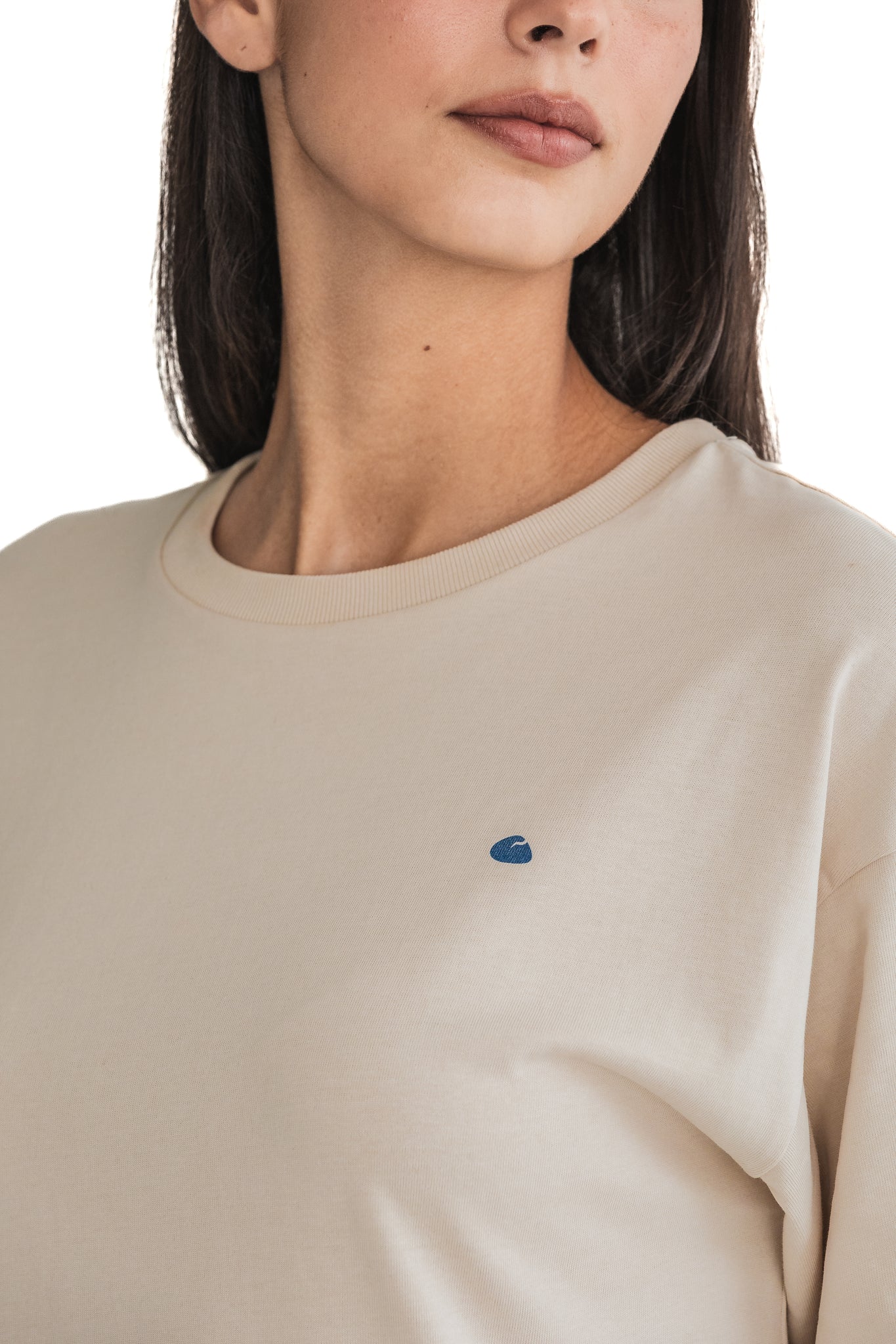 Certified organic cotton oversized t-shirt, 230 gsm. Wash cool, hang dry. GM-free. Not tested on animals. Does not contain animal-derived products. Material made in a renewable energy-powered factory, audited for a wide range of social and sustainability criteria. Made to be remade - scan the QR code in the care label to send it back when worn out.